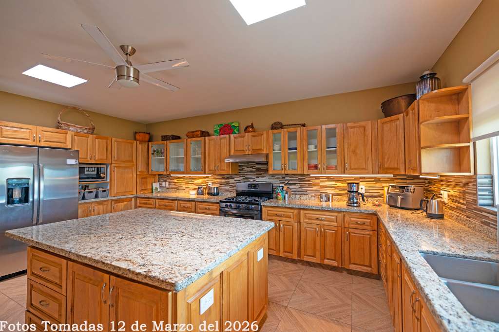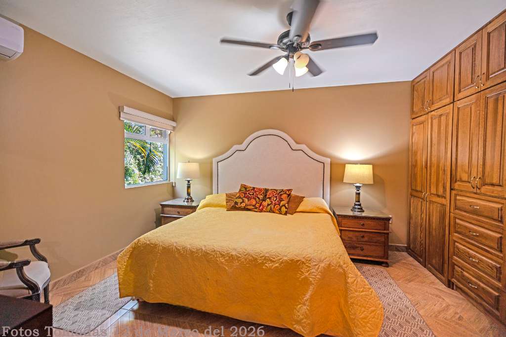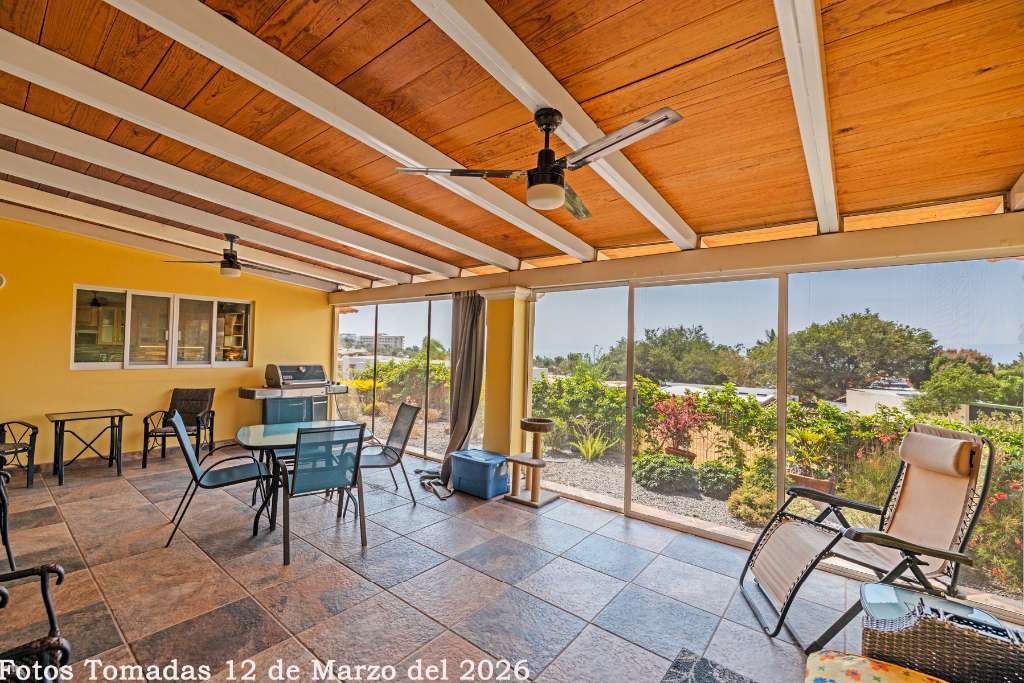 One level classic detached home, gourmet fully equipped kitchen facing sounth, two espacious bedrooms w/AC, two full bathroom + guest half bath, den, open living dining área with gorgeous boveda ceiling, screen BBQ terraza, carport.