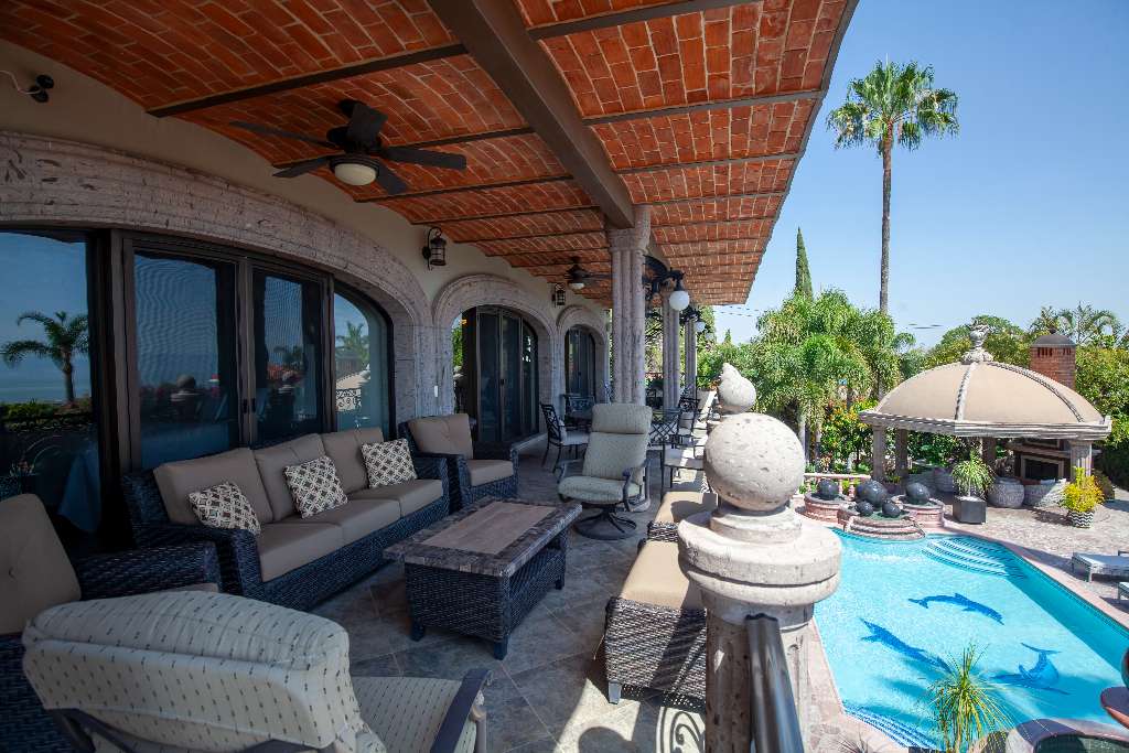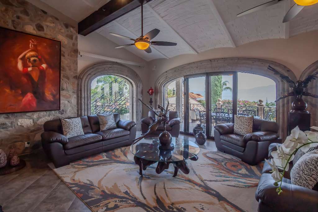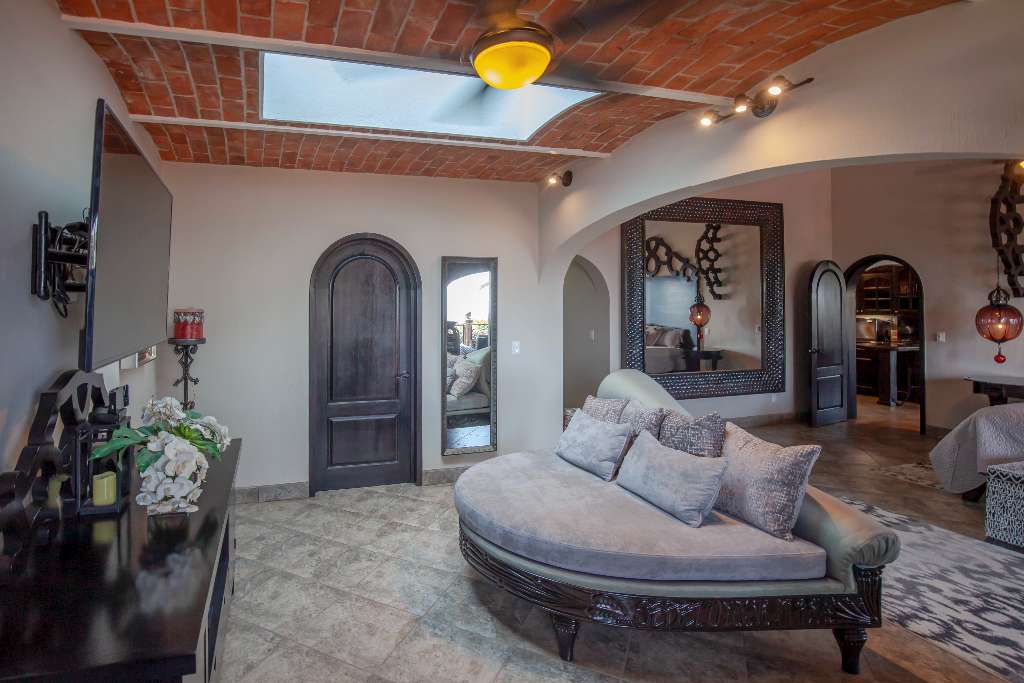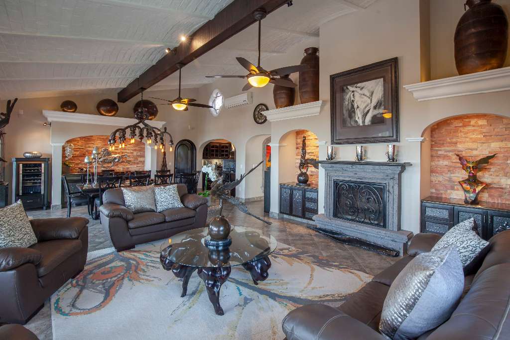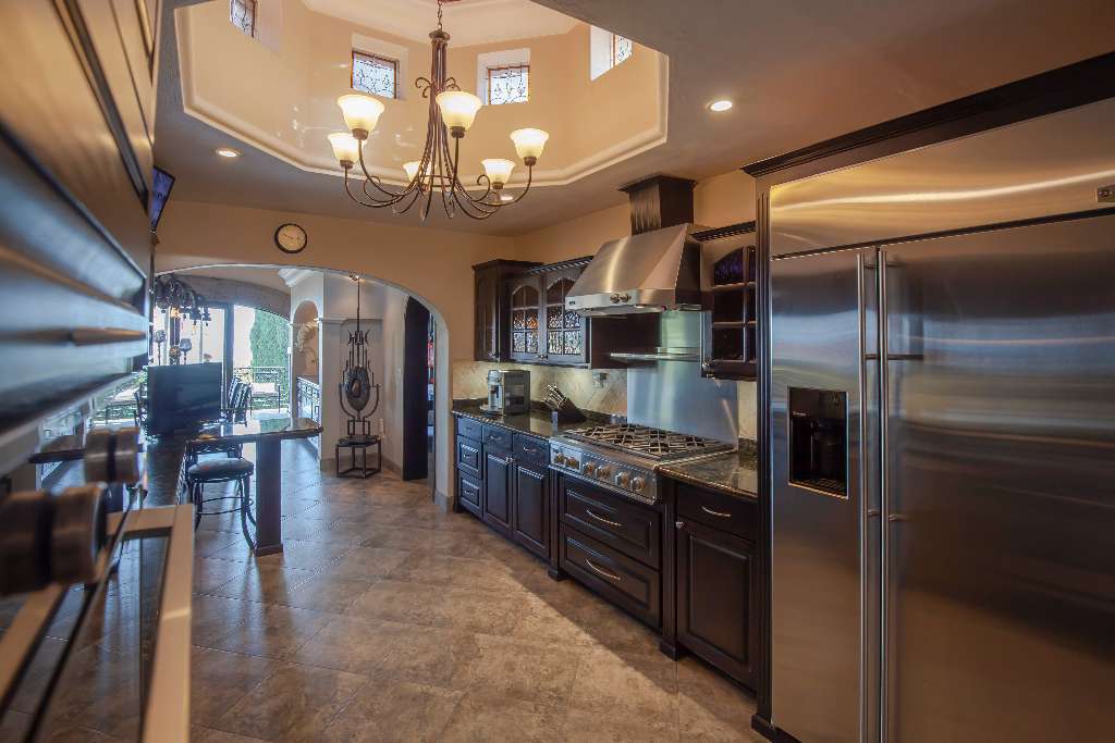 A generous gourmet kitchen features high end appliances with Boveda ceiling and a Cupola.