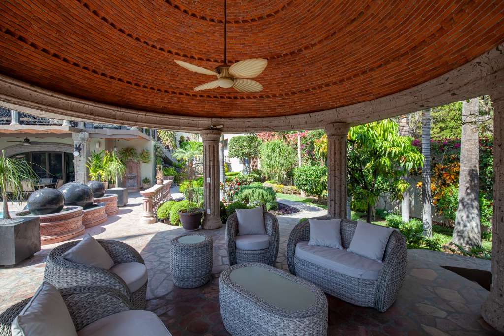 One of the covered outdoor areas is a Rotunda boasting one of the most unique brick ceilings you will find anywhere and an outdoor fireplace.