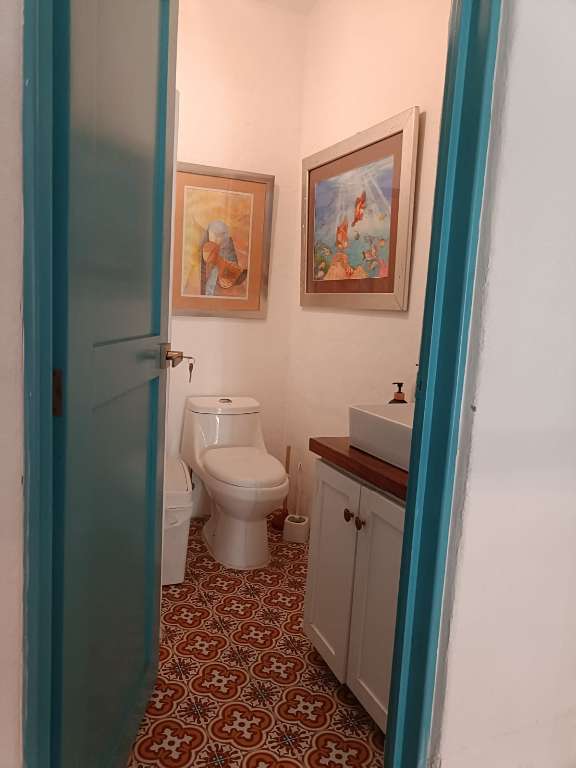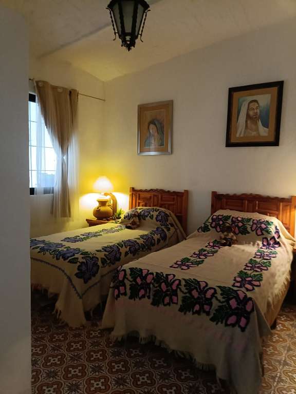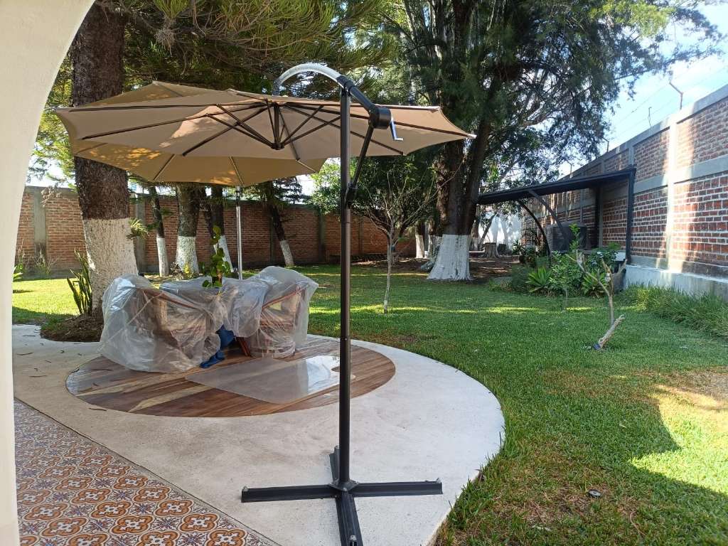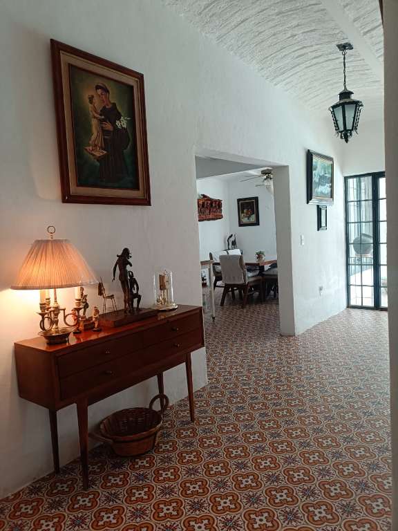 Inside, the house features a comfortable social area with a living room, dining room, and kitchen, all well-lit for practical and pleasant daily living. It includes an automatic garage for two cars, a covered terrace with a barbecue, a solar water heater, a well, and automatic irrigation.